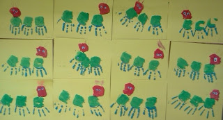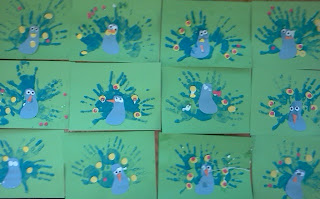 | Stamping with natural materials and stamps the children made |